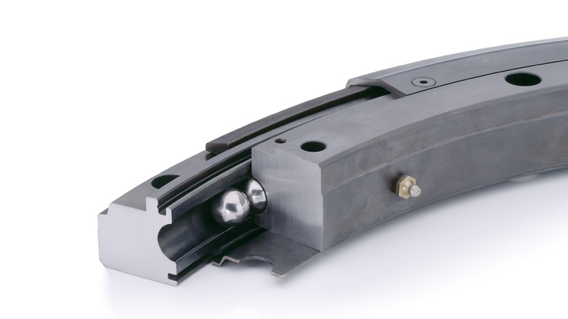 Slewing rings in four-point contact bearing design are often used to connect railcar bodies and bogies in modern streetcars and subways. The installation points of these bearings are characterized by high contamination, long operating times, vibrations, high accident rates, and difficult access.